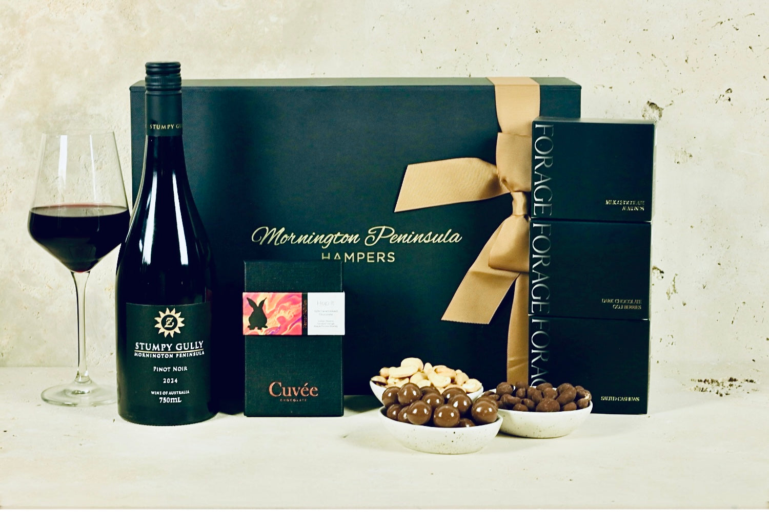 Celebrate Easter with a delicious taste of the Mornington Peninsula! This beautifully presented gift combines a bottle of premium local wine with a selection of irresistible artisan chocolates and gourmet nuts, making it the perfect gift to share over the Easter long weekend.